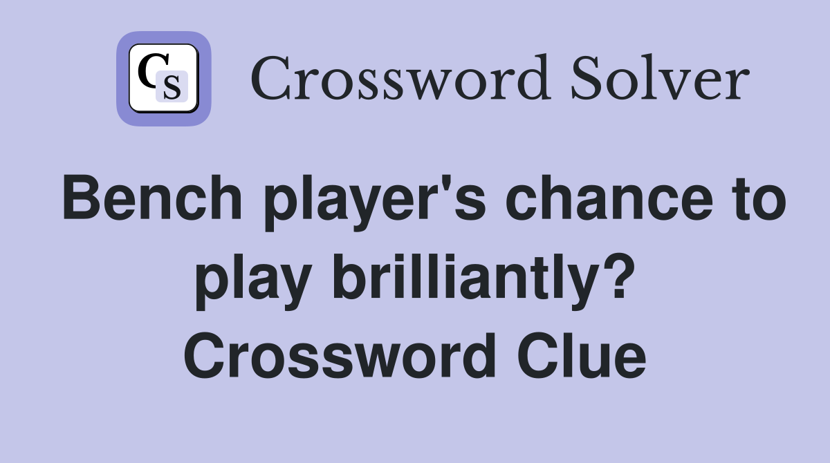 Bench player #39 s chance to play brilliantly? Crossword Clue Answers