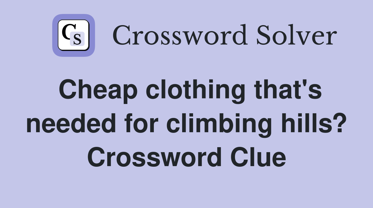 Cheap clothing that #39 s needed for climbing hills? Crossword Clue