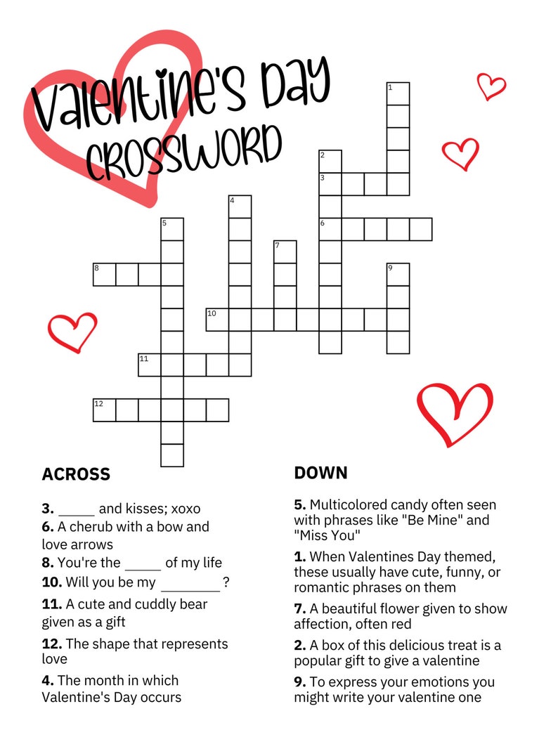 Valentine #39 s Day Crossword Puzzle: Kids Printable Game (PDF) Etsy