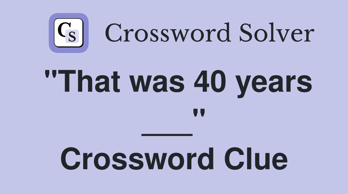 quot That was 40 years quot Crossword Clue Answers Crossword Solver