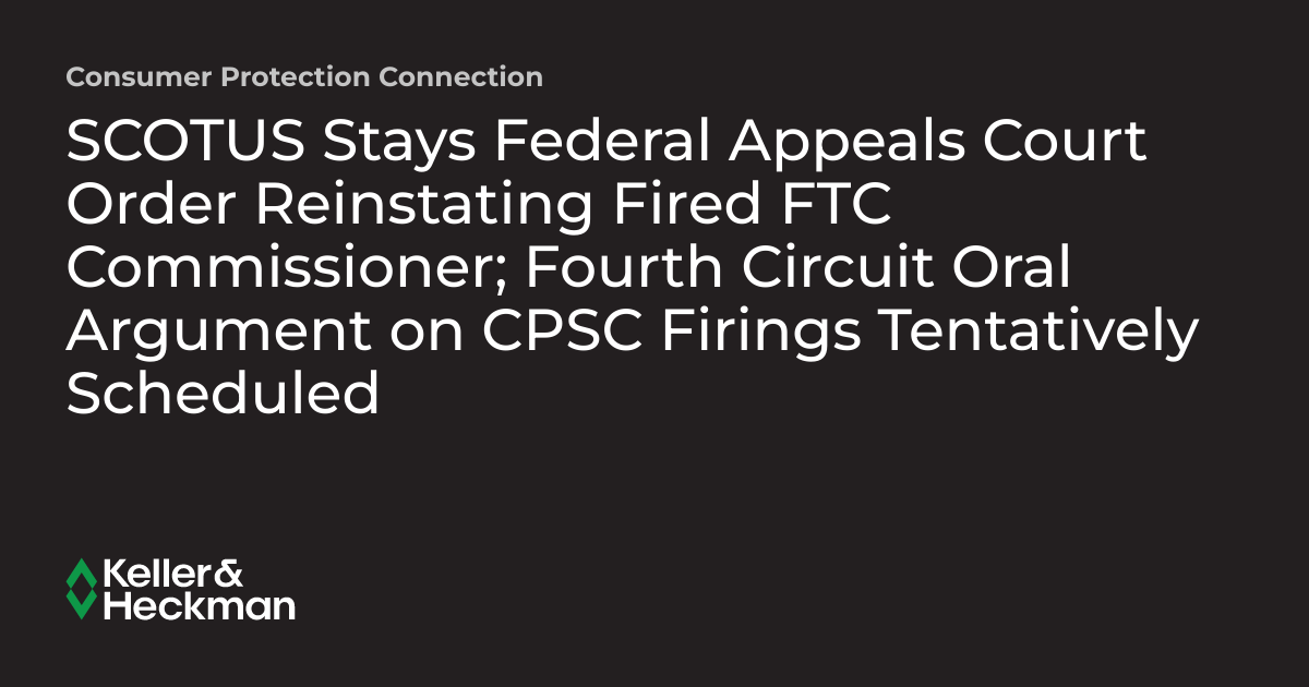 SCOTUS Stays Federal Appeals Court Order Reinstating Fired FTC