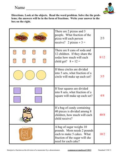 Fraction Division Word Problems 5 NF 3 Teaching Resources
