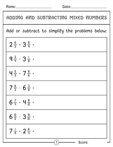 Add and subtract with unlike denominators 1 worksheet Fractions