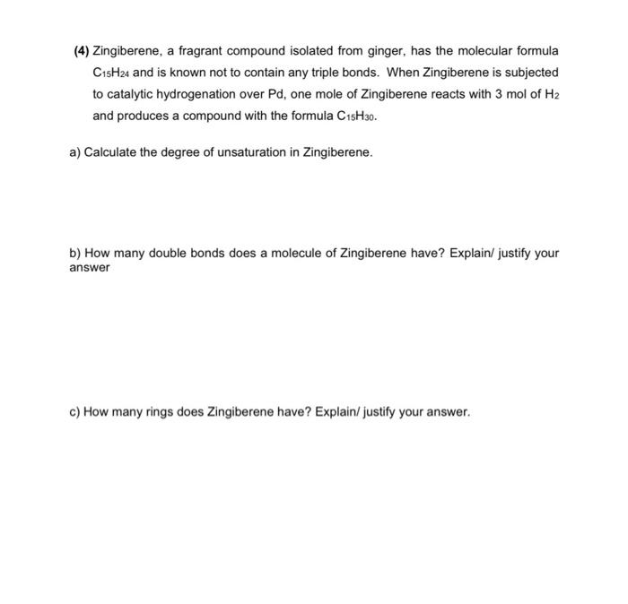 Solved (4) Zingiberene a fragrant compound isolated from Chegg com