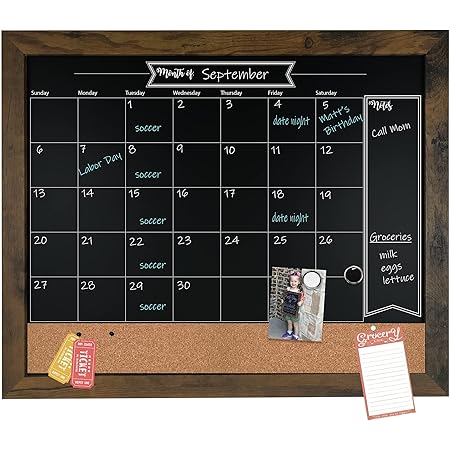 Amazon com : Loddie Doddie 18x24 Rustic Framed Chalkboard Calendar and