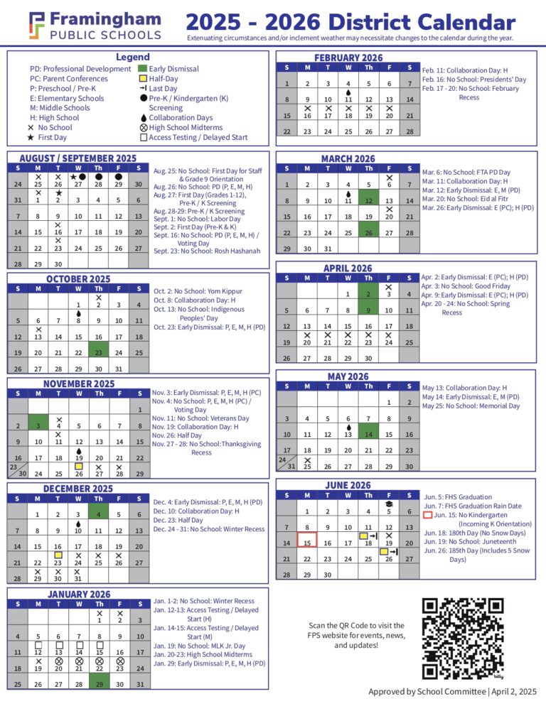 Framingham Public Schools MA Calendar 25 26 Revised PDF EduCounty