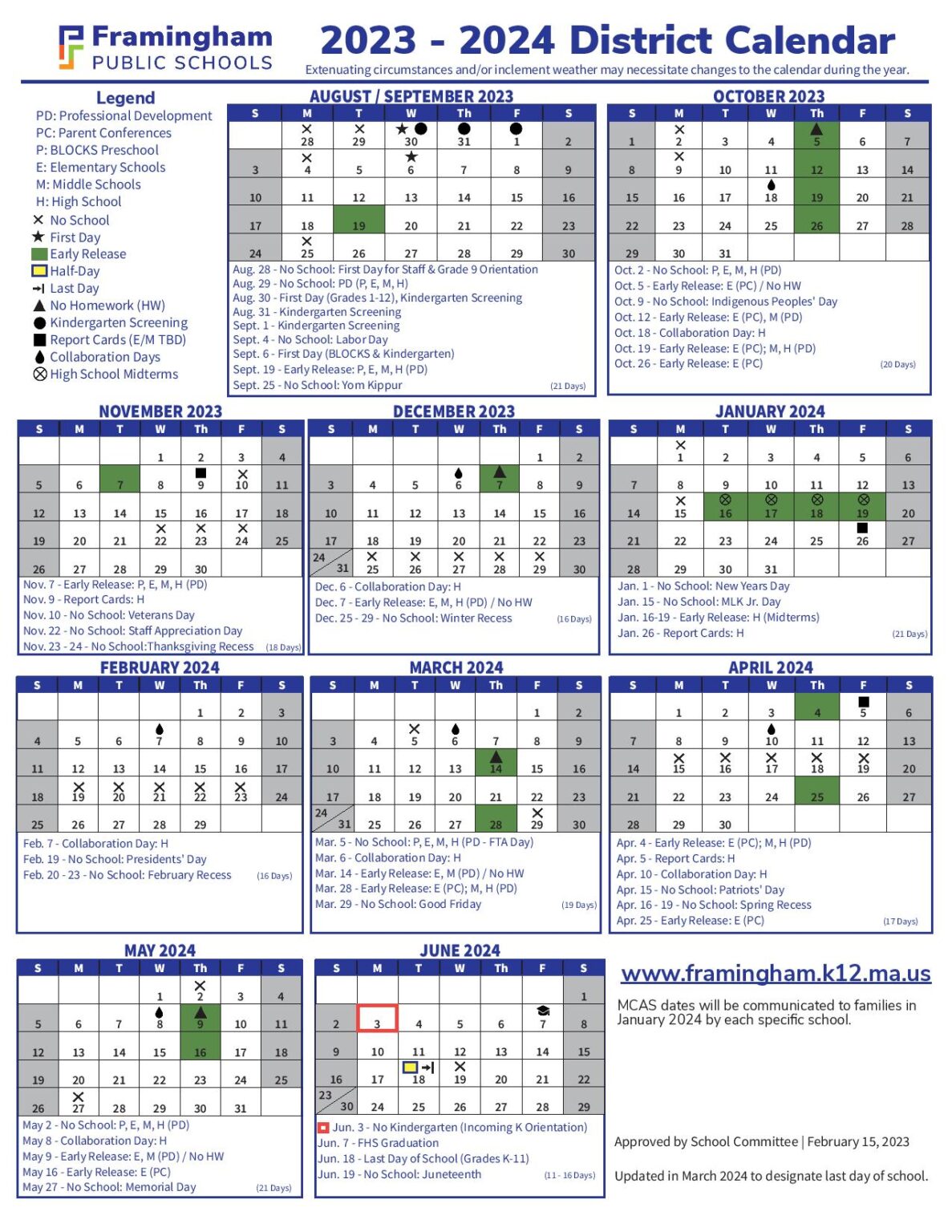 Framingham School Committee Approved 2023 24 Calendar Framingham Source