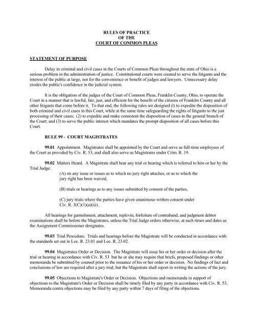 Franklin County Ohio Court Of Common Pleas Forms CountyForms com