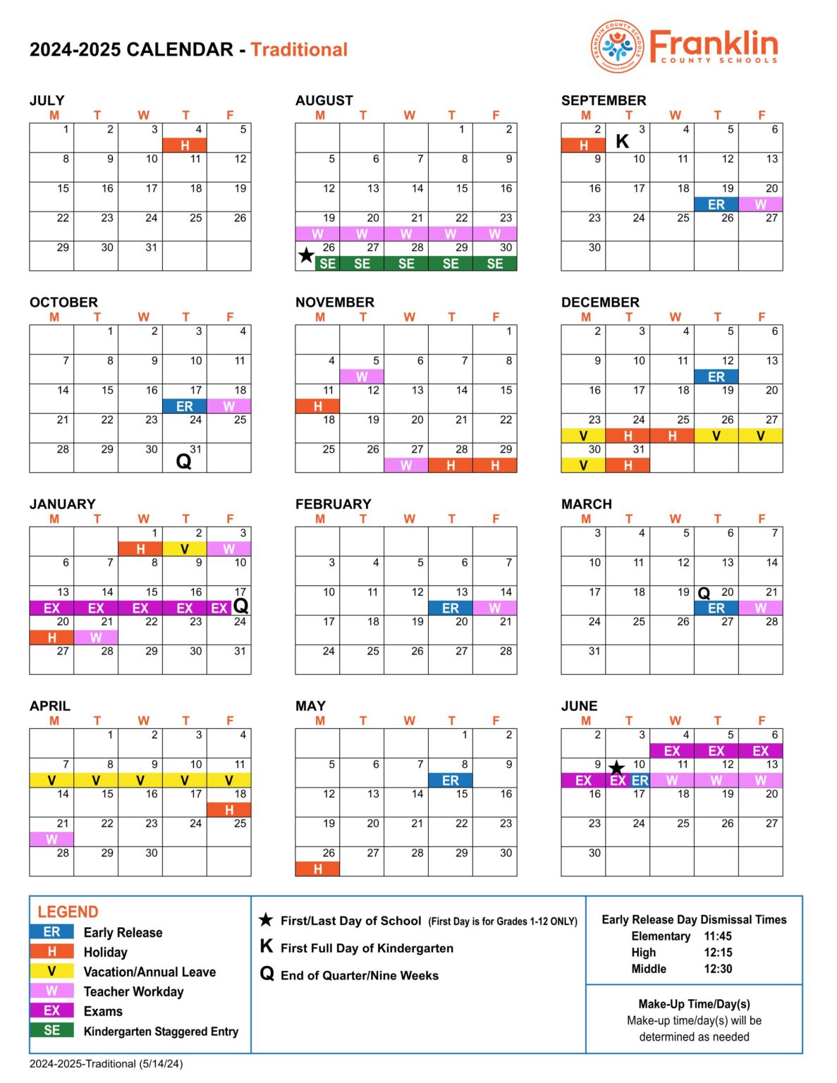 Franklin County School Calendar 2024 2025 Academic Year