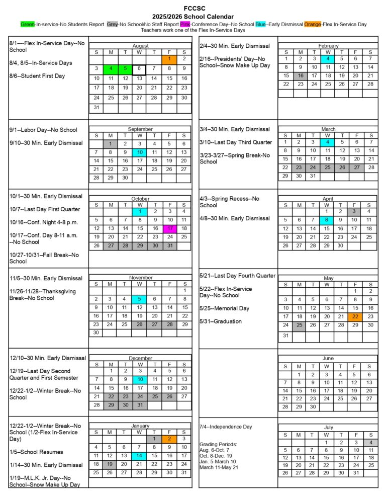 FCCSC Franklin County Community Corp Calendar 25 26 Revised EduCounty