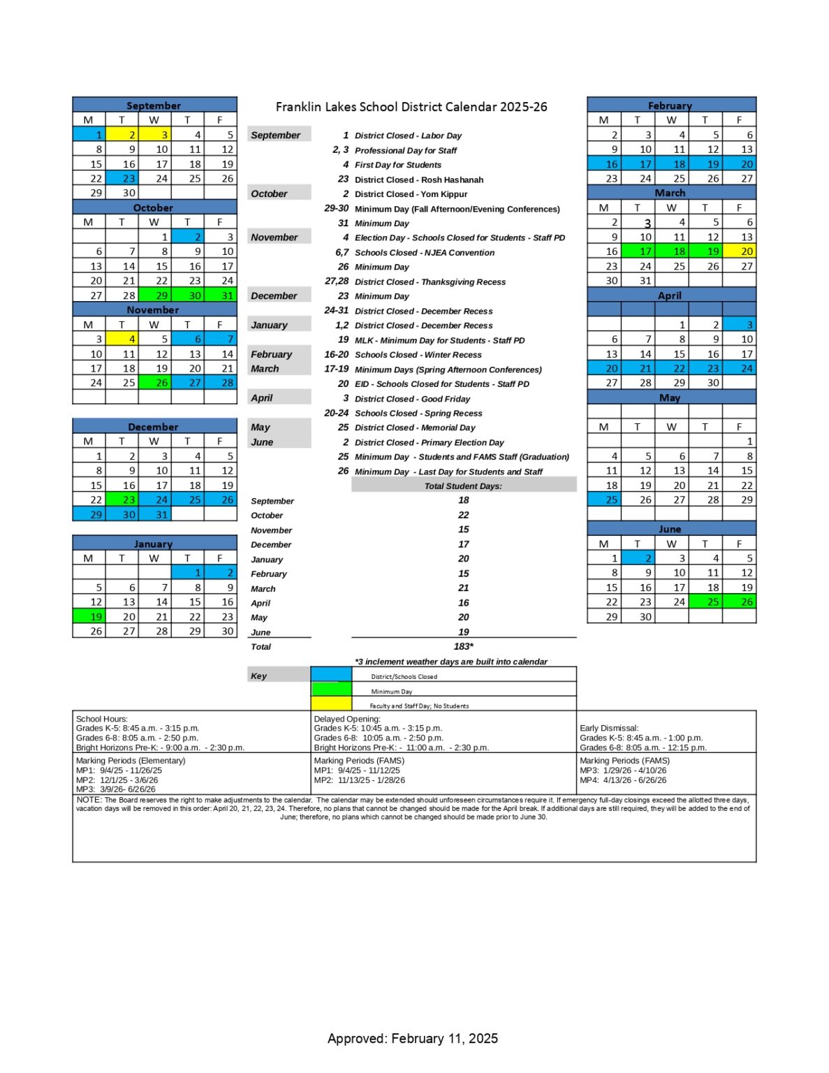 Franklin Lakes School District Calendar 25 26 Revised PDF EduCounty