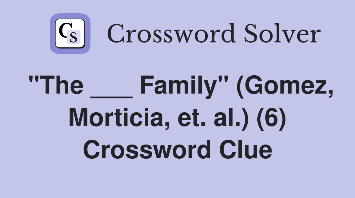 quot The Family quot (Gomez Morticia et al ) (6) Crossword Clue