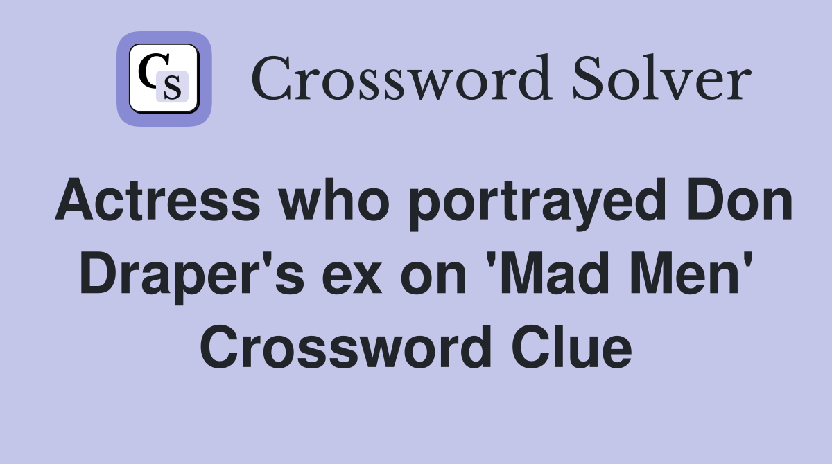 Actress who portrayed Don Draper #39 s ex on #39 Mad Men #39 Crossword Clue