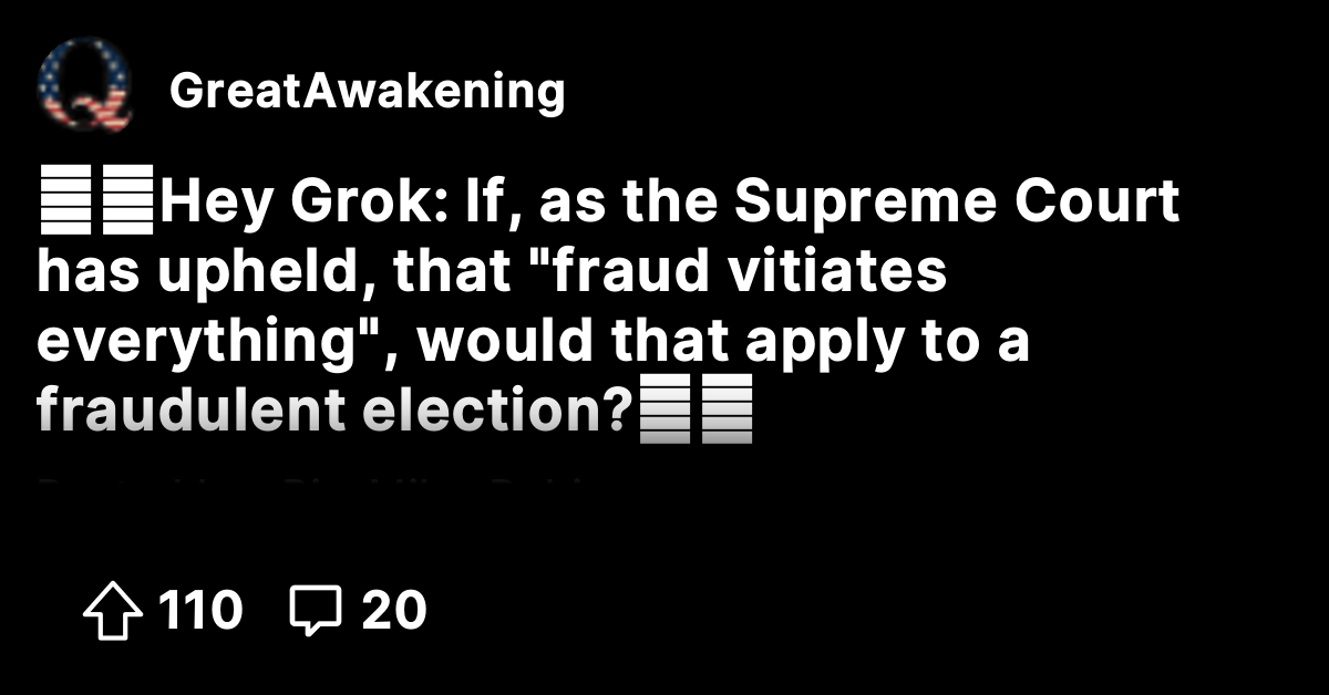 🧐🍿Hey Grok: If as the Supreme Court has upheld that quot fraud vitiates