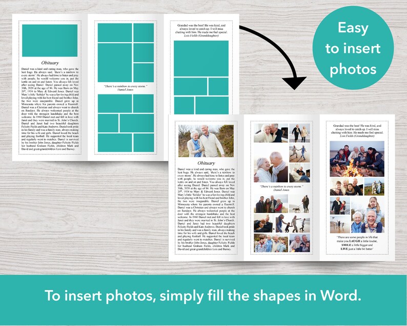 11x17 Funeral Program Template Bi fold Editable Obituary Print From