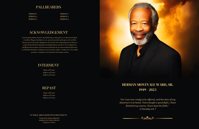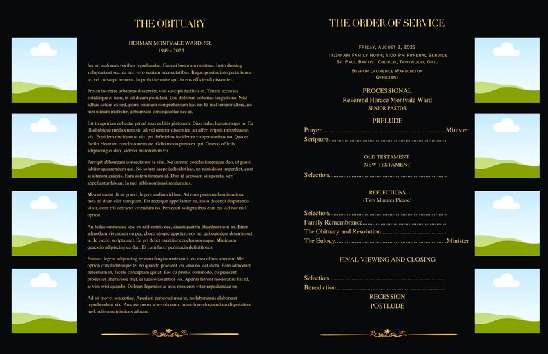 Dignified 11x17 Funeral Program Template Black Gold Obituary Easy