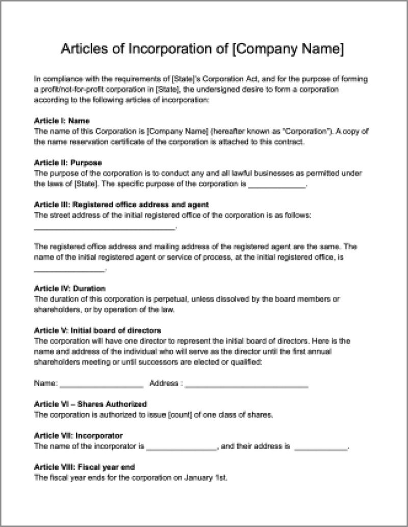 Fillable Online Articles of Incorporation: Free PDF Word Doc Template