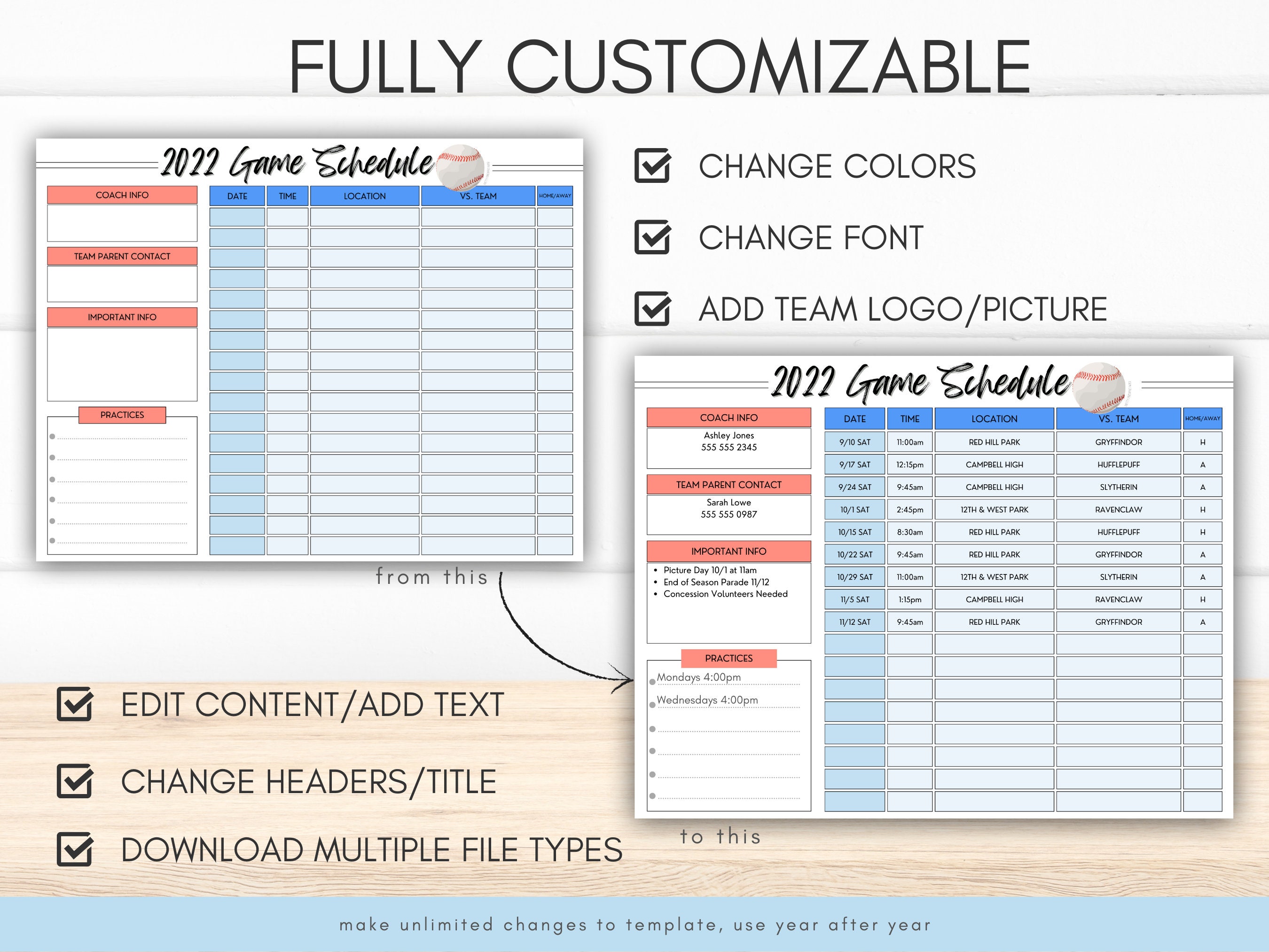 Editable Baseball Game Schedule Template Instant Download to Etsy