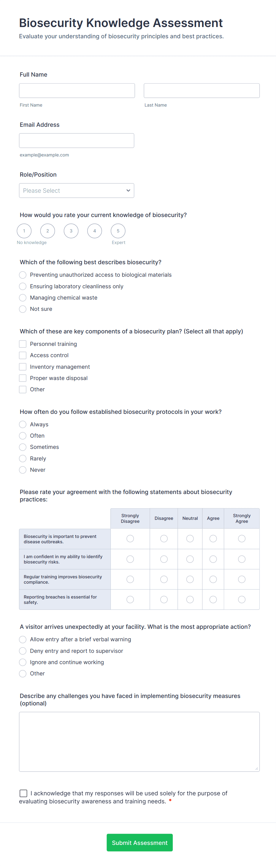 Biosecurity Knowledge Assessment Form Template Jotform