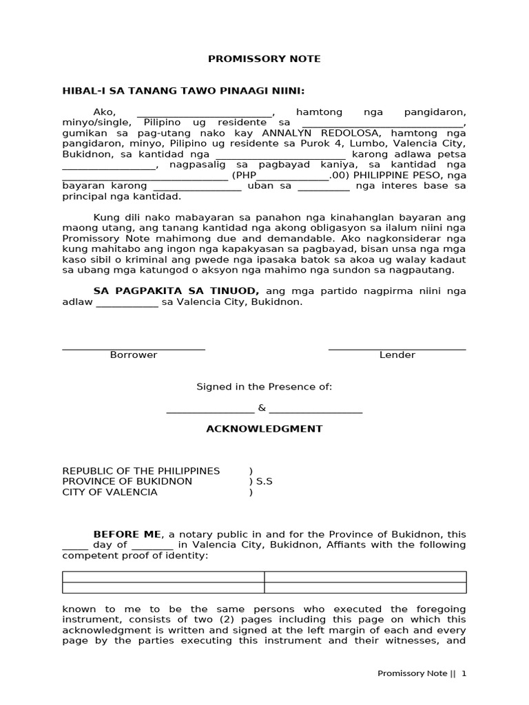 Promissory Note Promissory Note Template Etsy