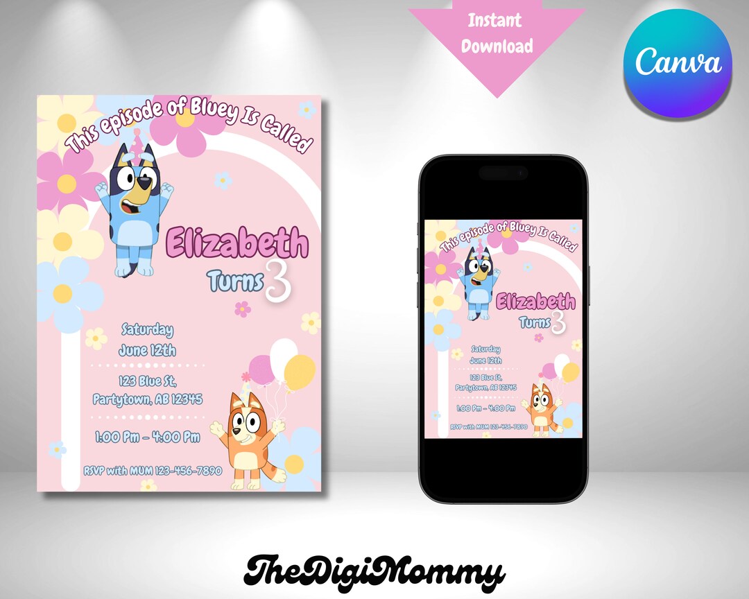 EDITABLE Bluey Birthday Theme Invitation Digital Download or