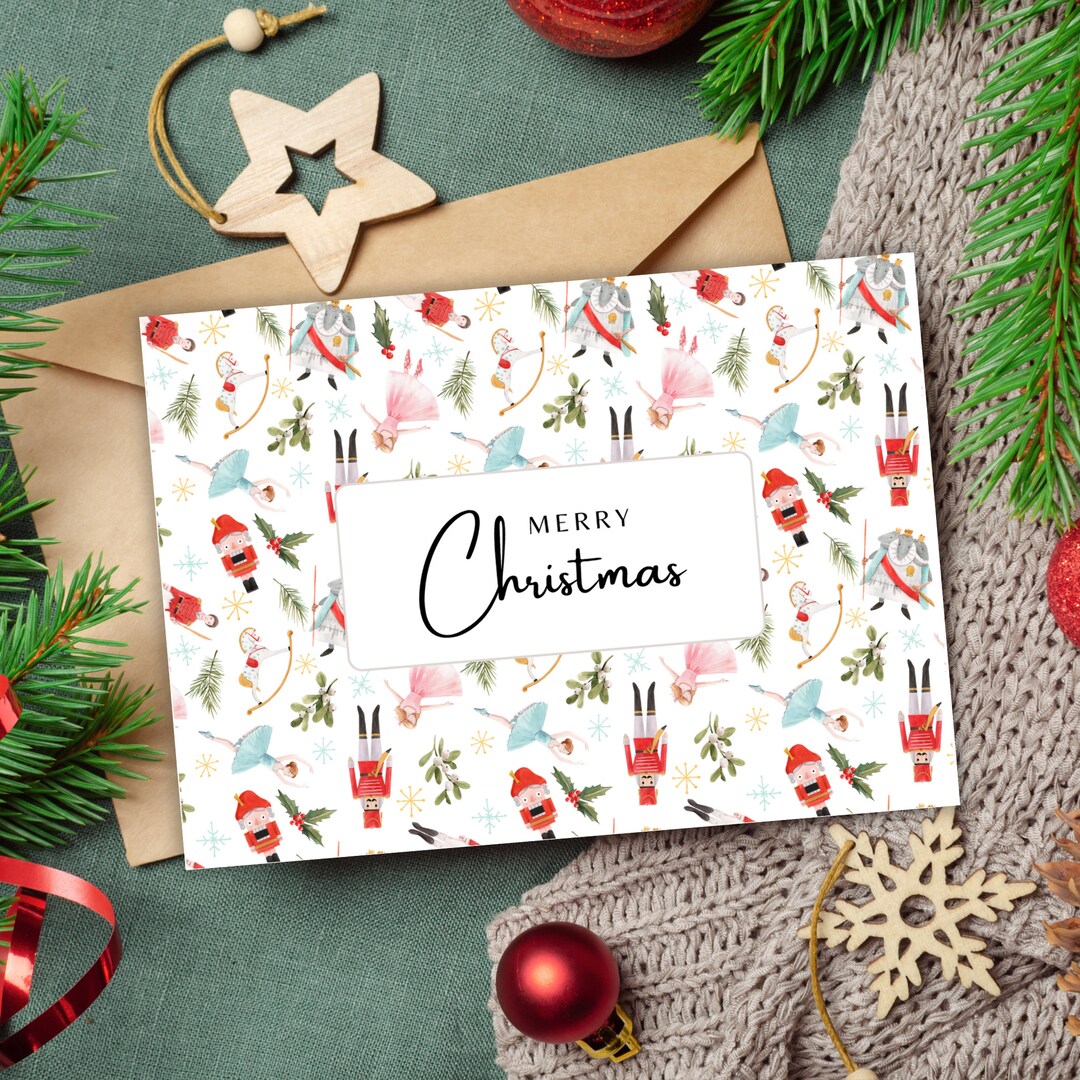 Printable Christmas Card With Nutcracker Illustration Design Festive