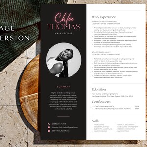 Pink Hair Stylist Resume Template Canva Pink and Black Color Cv