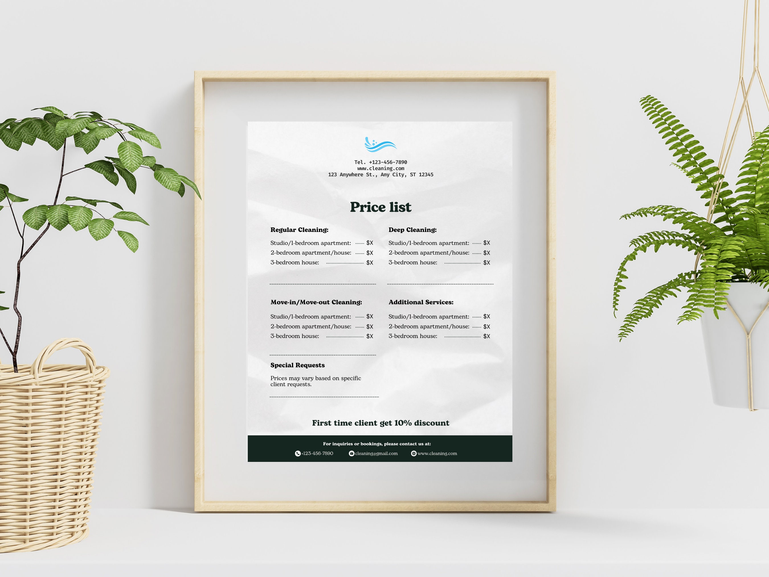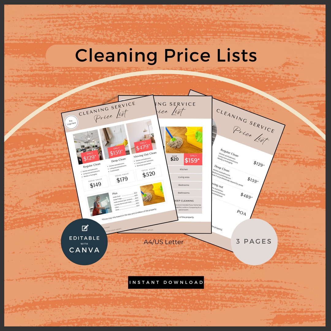 Cleaning Business Price List Template Editable Cleaning Marketing