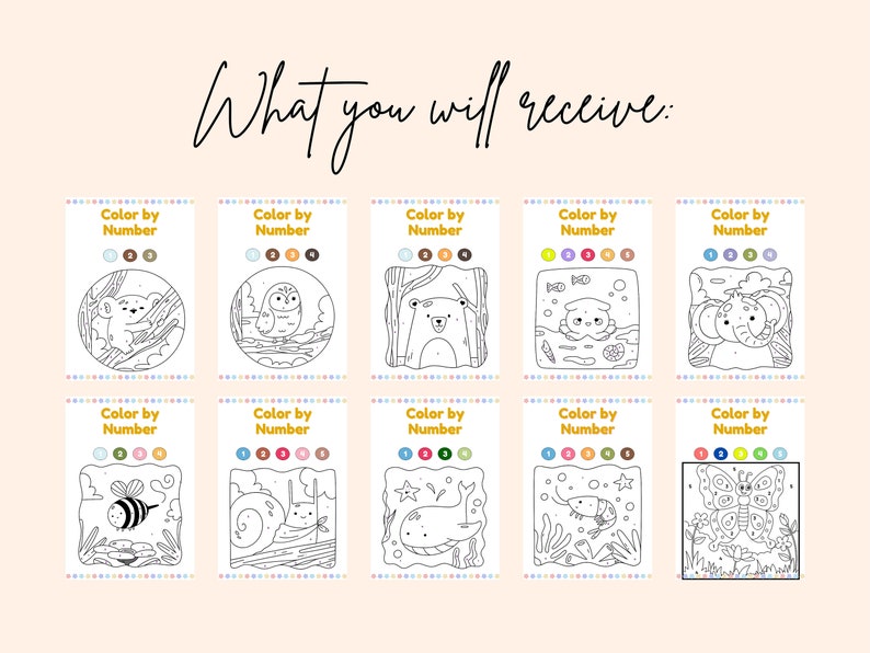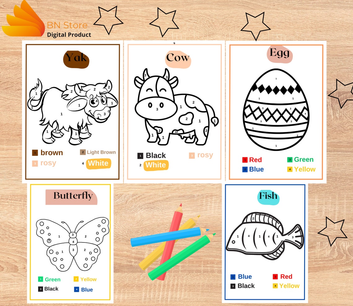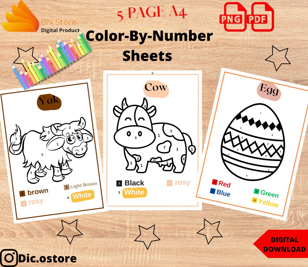 25 Printable Color by Number Pages With Animals for Kids Etsy