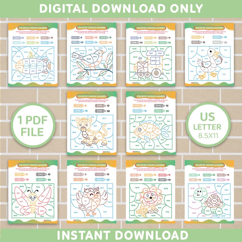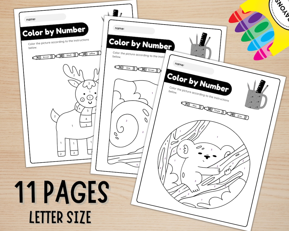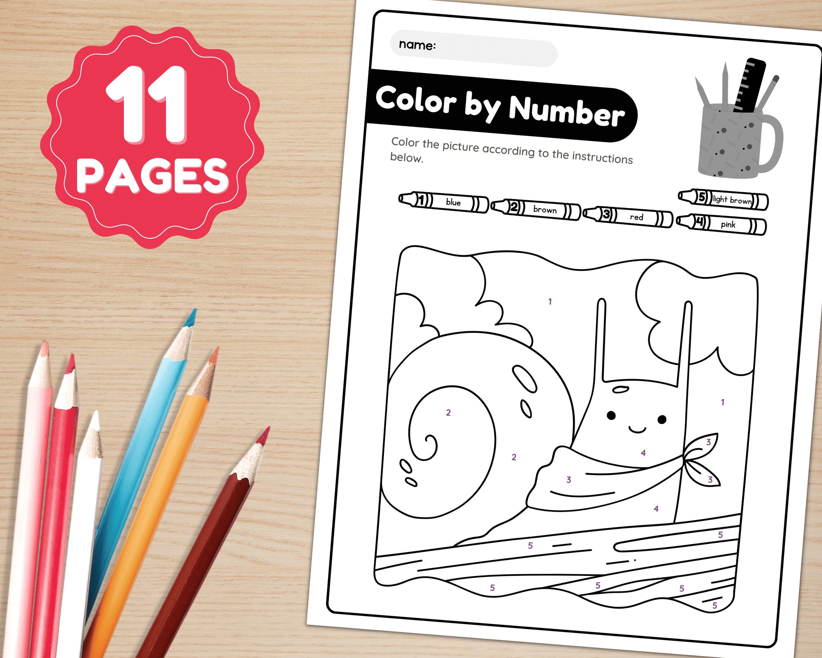 Animal Color by Number Worksheets for Kids 14 page Preschool Animal
