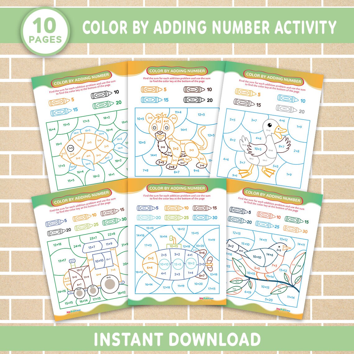Printable Children #39 s Animal Color by Numbers Pages Set of 10 Fun and
