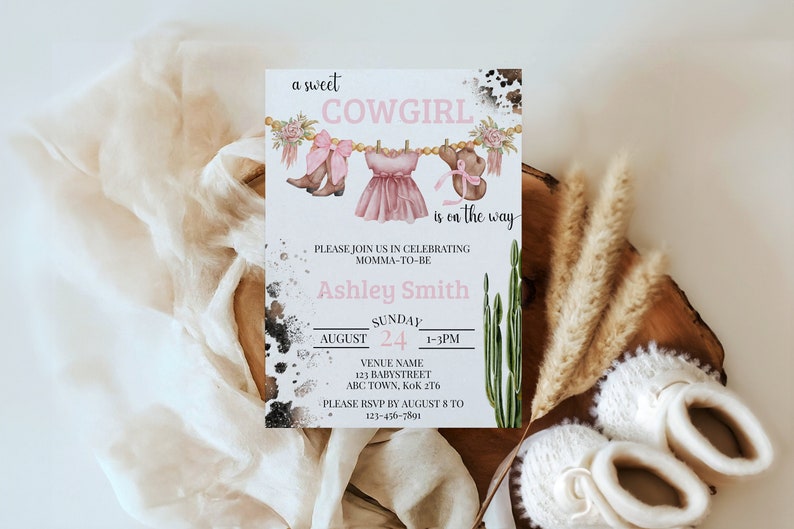 COWGIRL Baby Shower Digital Invitation Template Rodeo Cowgirl Baby