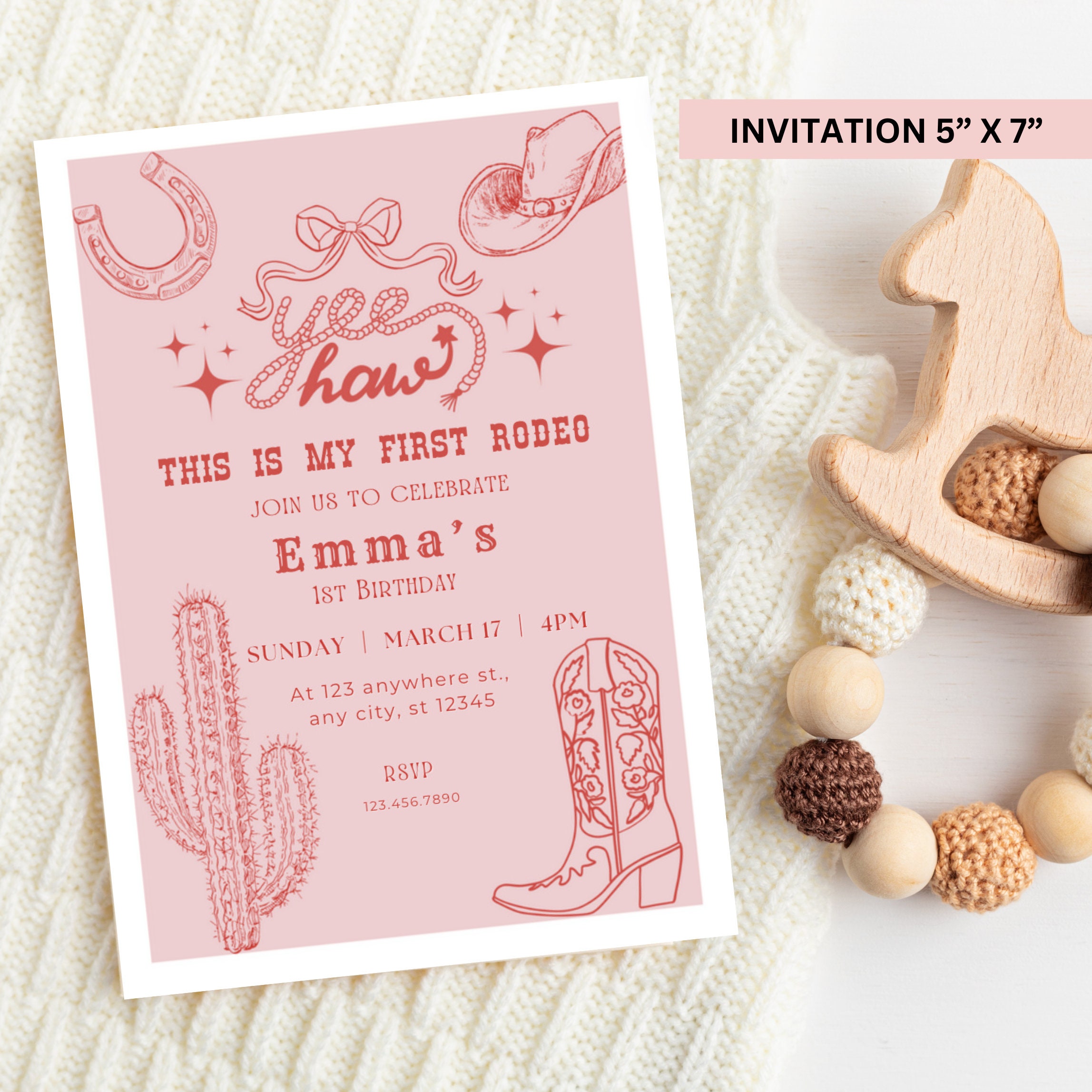 First Birthday Invitation Party Bundle Western Cowgirl Invitation
