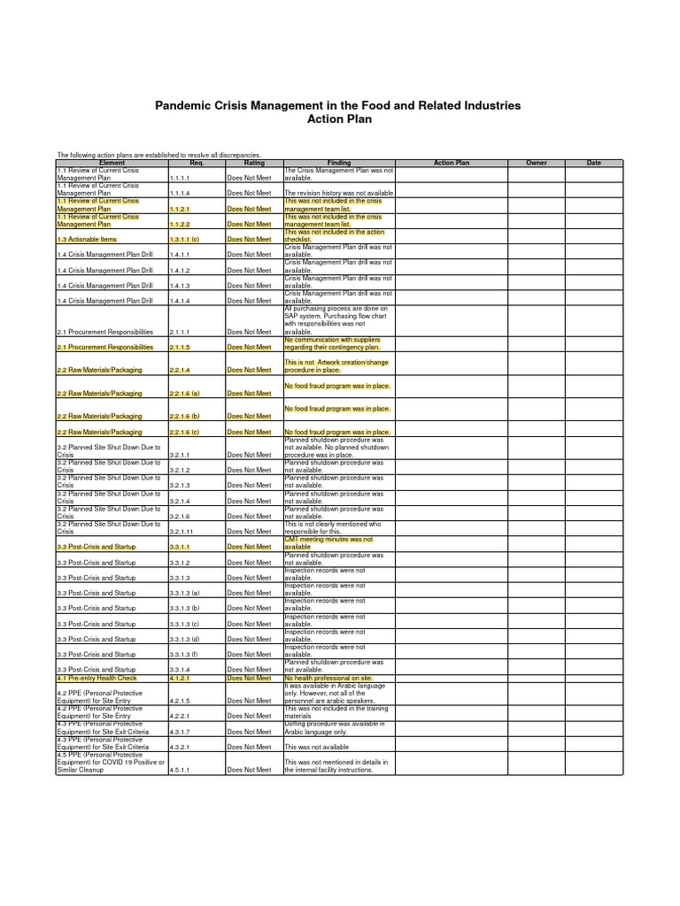 Pre Assessment Pandemic Prepared Certification Action Plan PDF