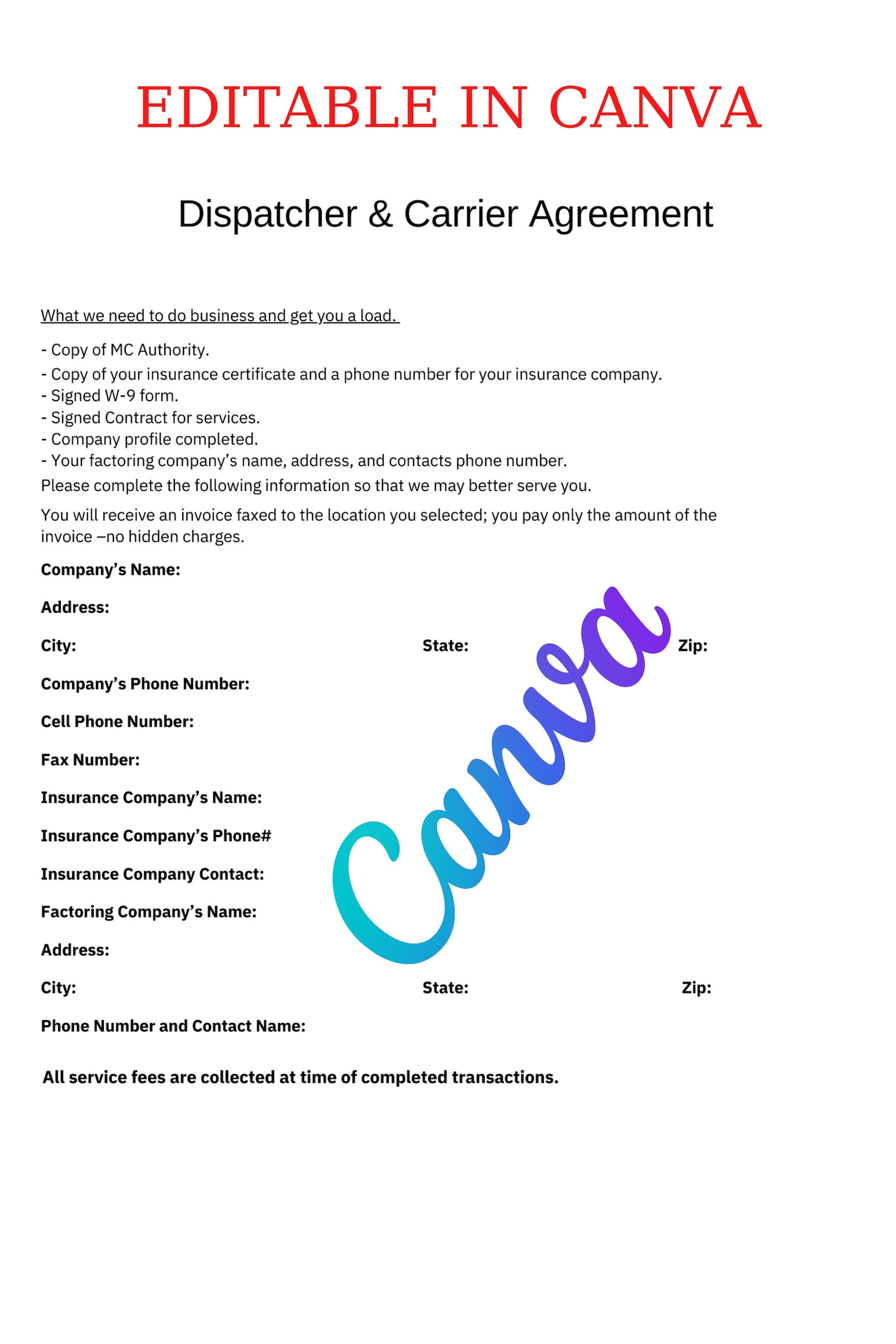 Freight Dispatch Carrier Contract: DIY Canva Template (instant Download