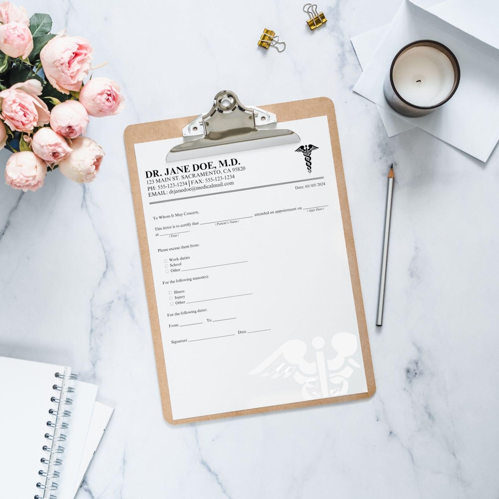 Printable Doctors Excuse Template EDITABLE Medical Office Forms Work