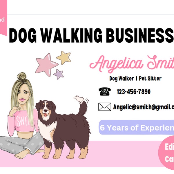 Dog Walking Business Card Template Dog Walker Pet Sitting Etsy