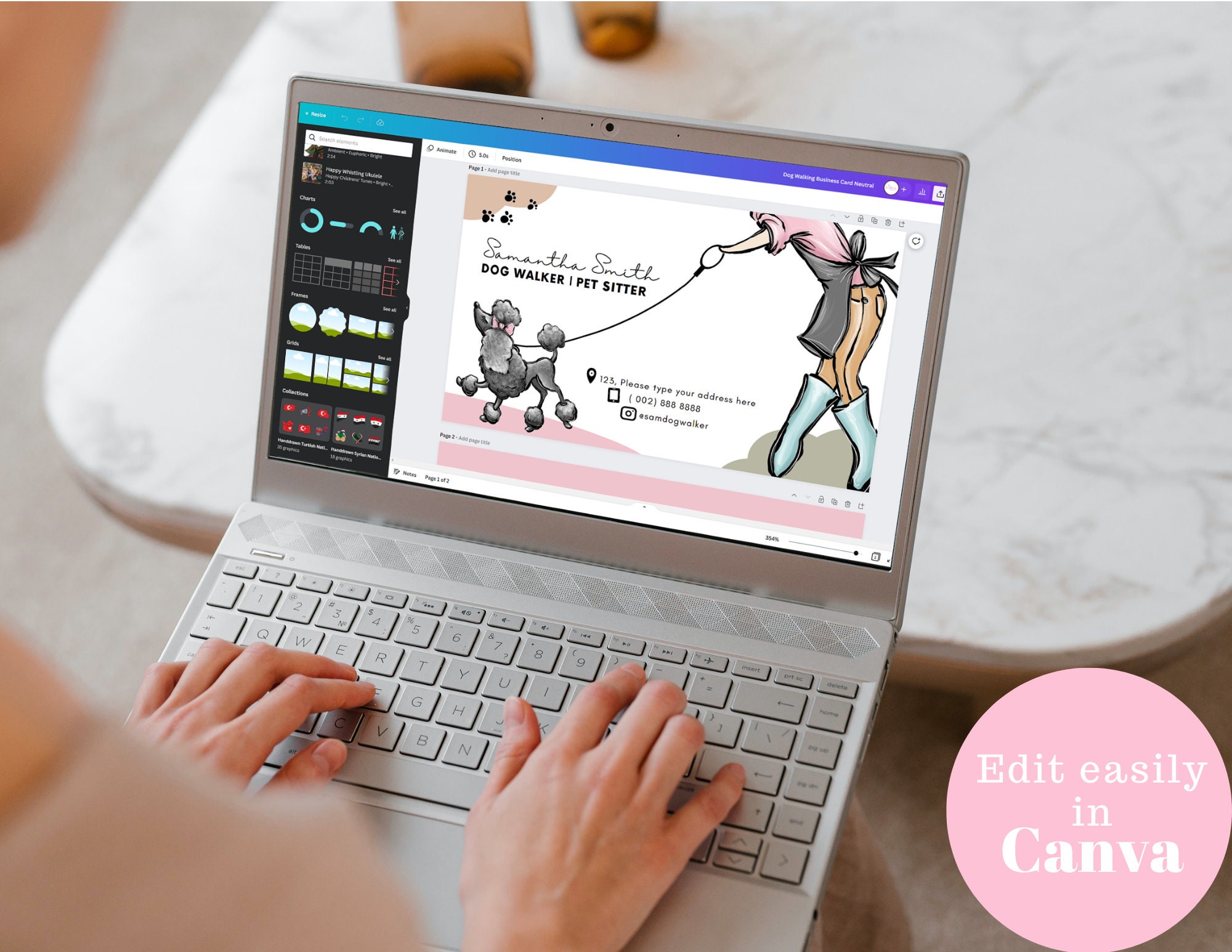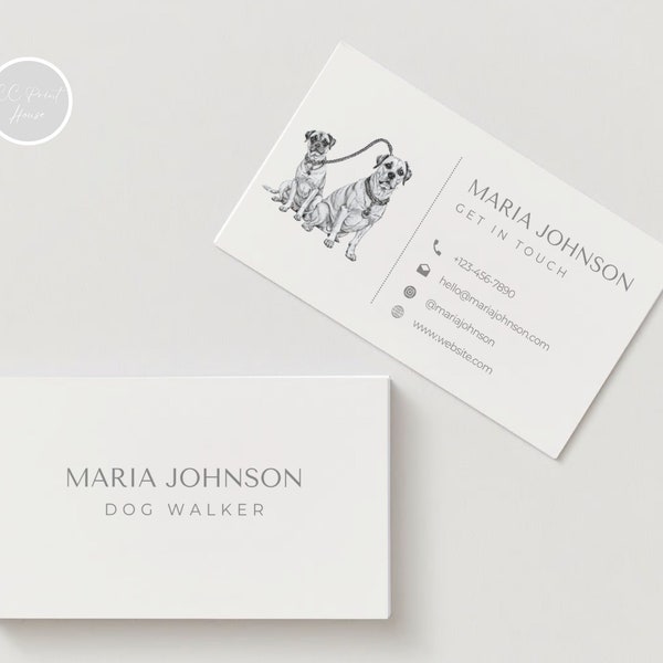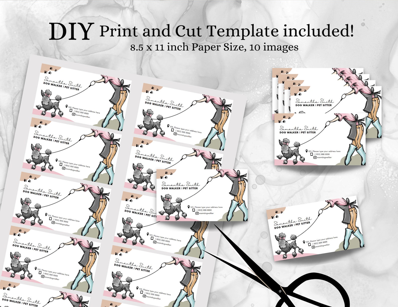 Dog Walking Business Card Template Dog Walker Editable Minimalist Pet