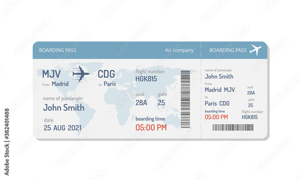 Boarding Pass Template Airline Ticket Plane Stock Vector (Royalty Free