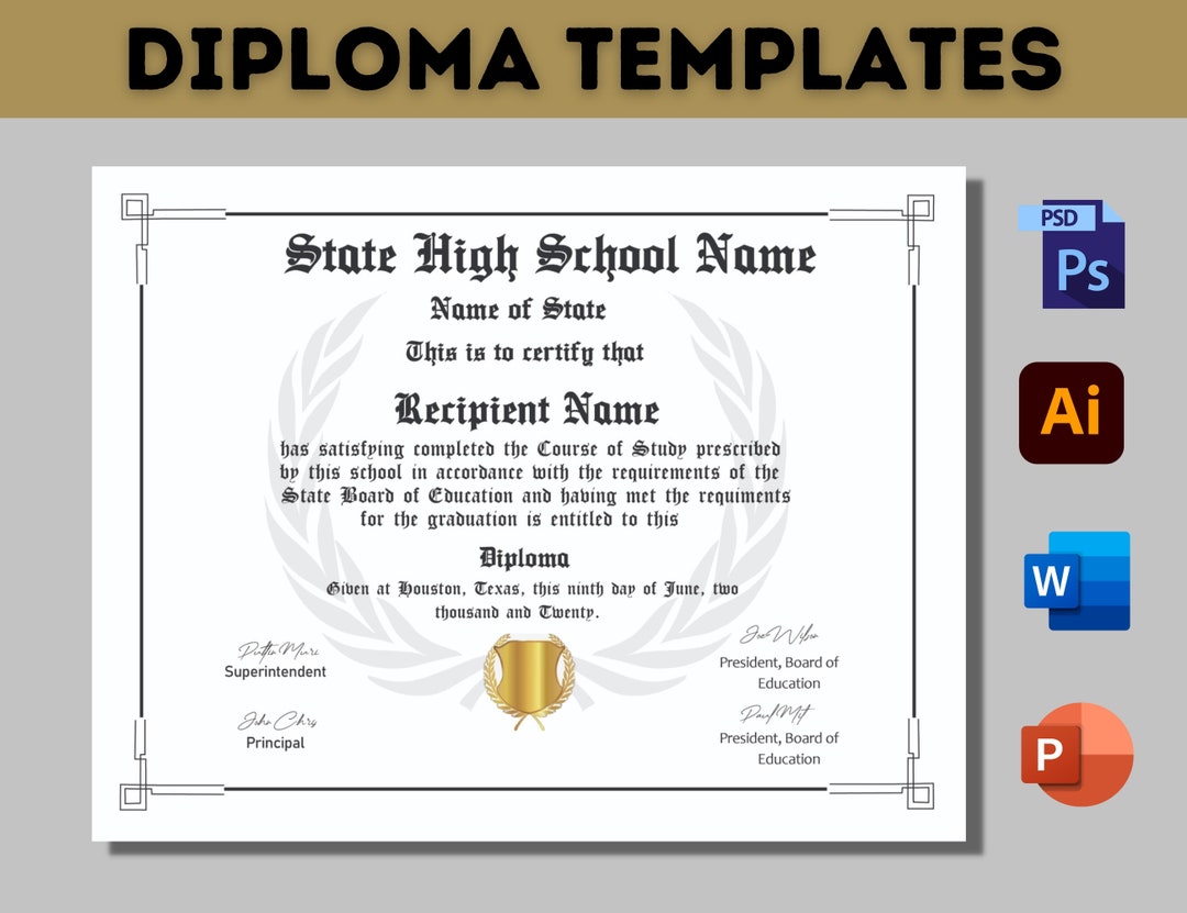 Printable Homeschool Diploma Template Editable High School Diploma 8