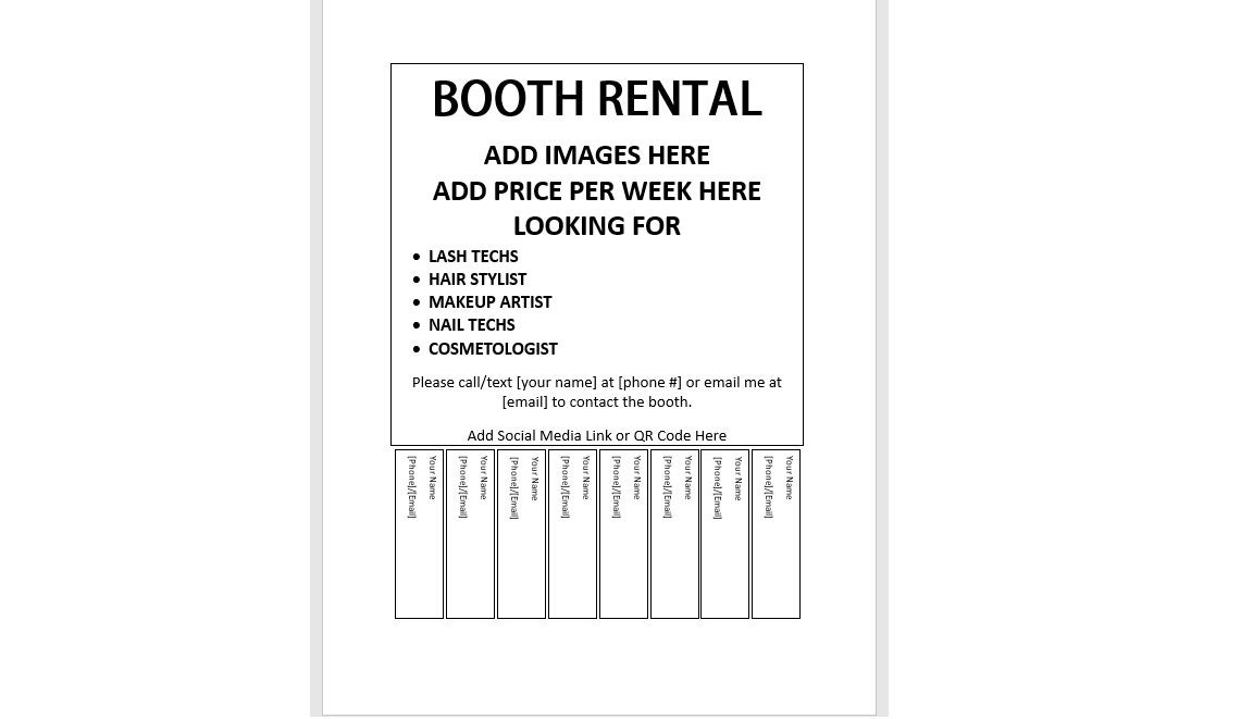 Editable Booth Rental Tear off Flyer Booth Rental Ad Tear off Flyer