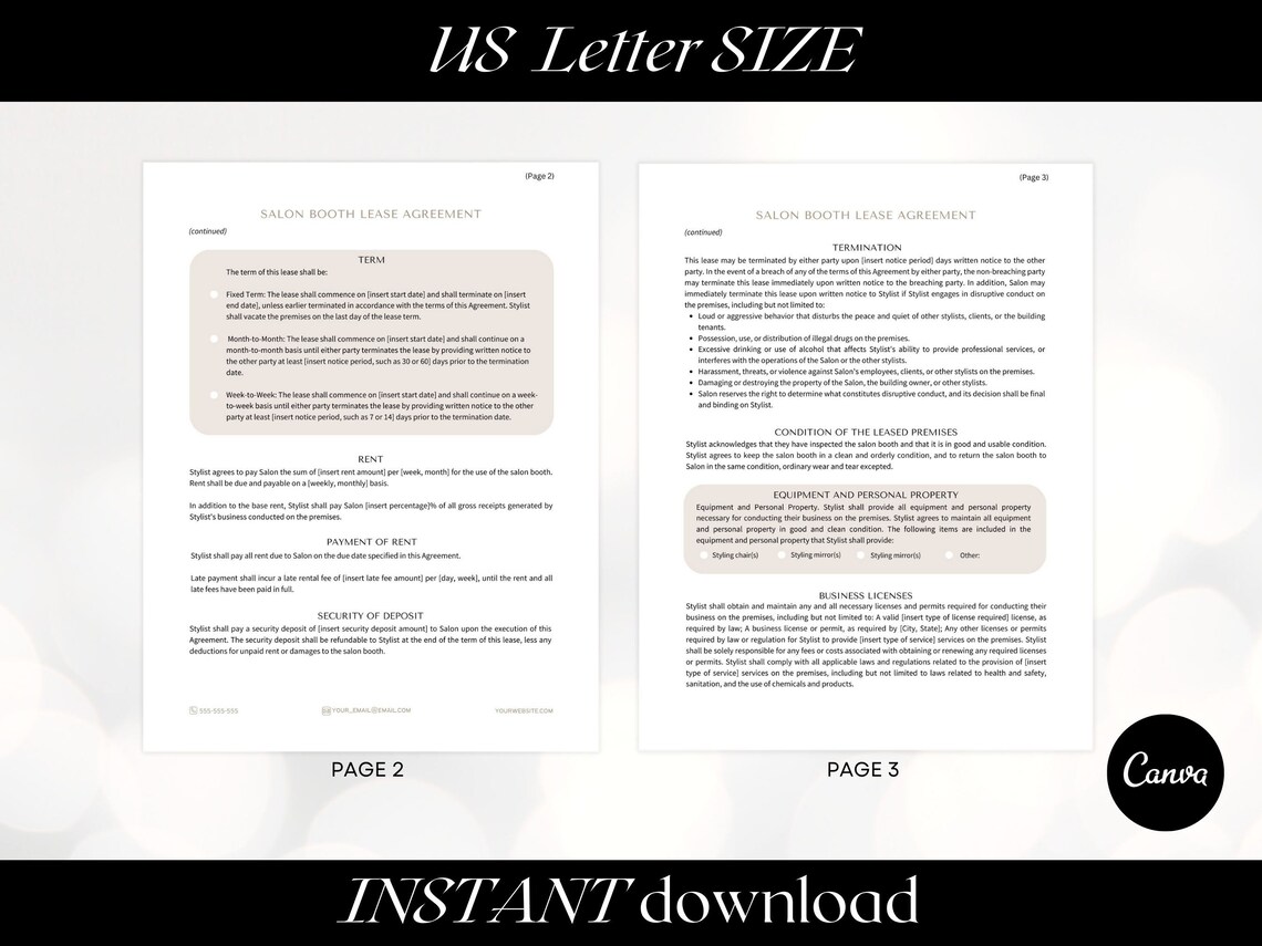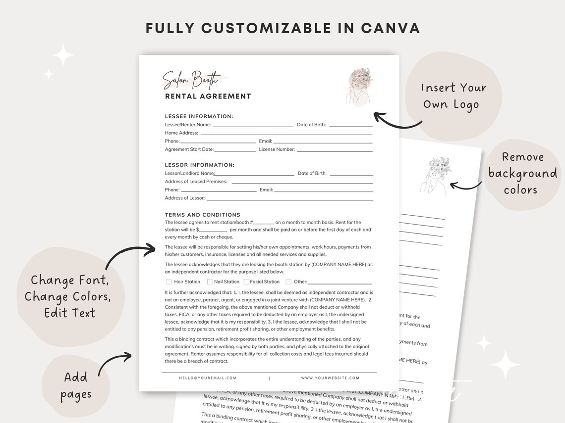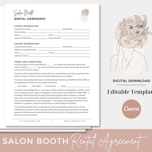 Professional Salon Booth Rental Contract Editable Booth Rental Etsy