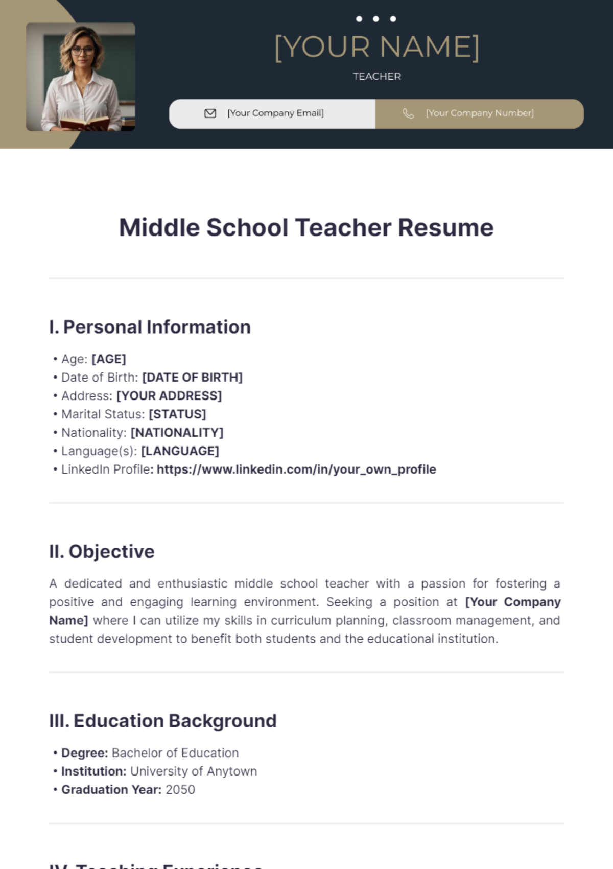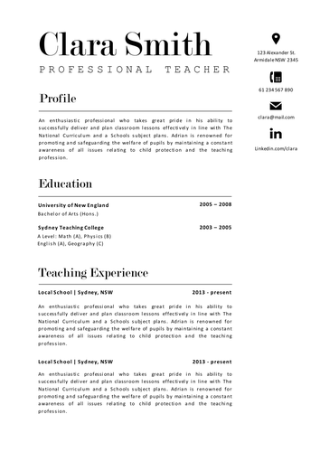 Free Teacher Resume Template to Edit Online