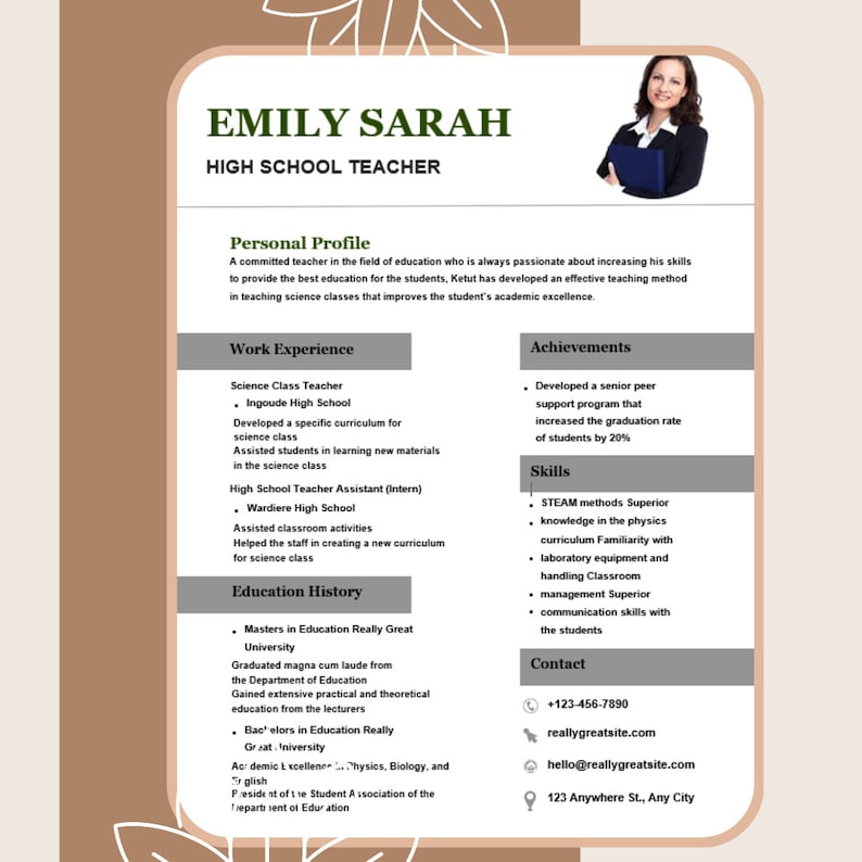 10 Free Editable Teacher Resume Template Free Download for Educators
