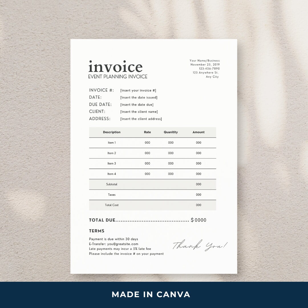 Event Planner Invoice Template: Minimalist Business Form (canva