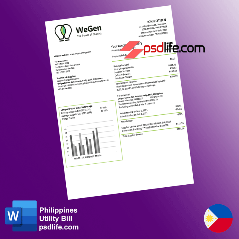 Philippine Wegen Top utility bill Photoshop template in 2023
