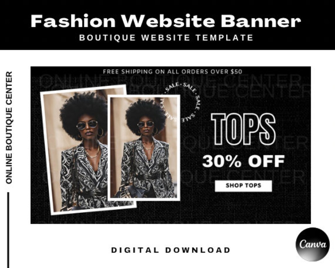 Black and White Fashion Boutique Website Banners Canva Template