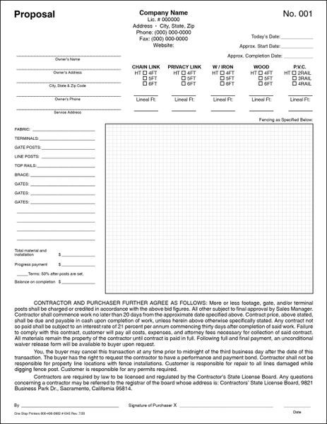 Free Fence Proposal Template Printable Calendars AT A GLANCE