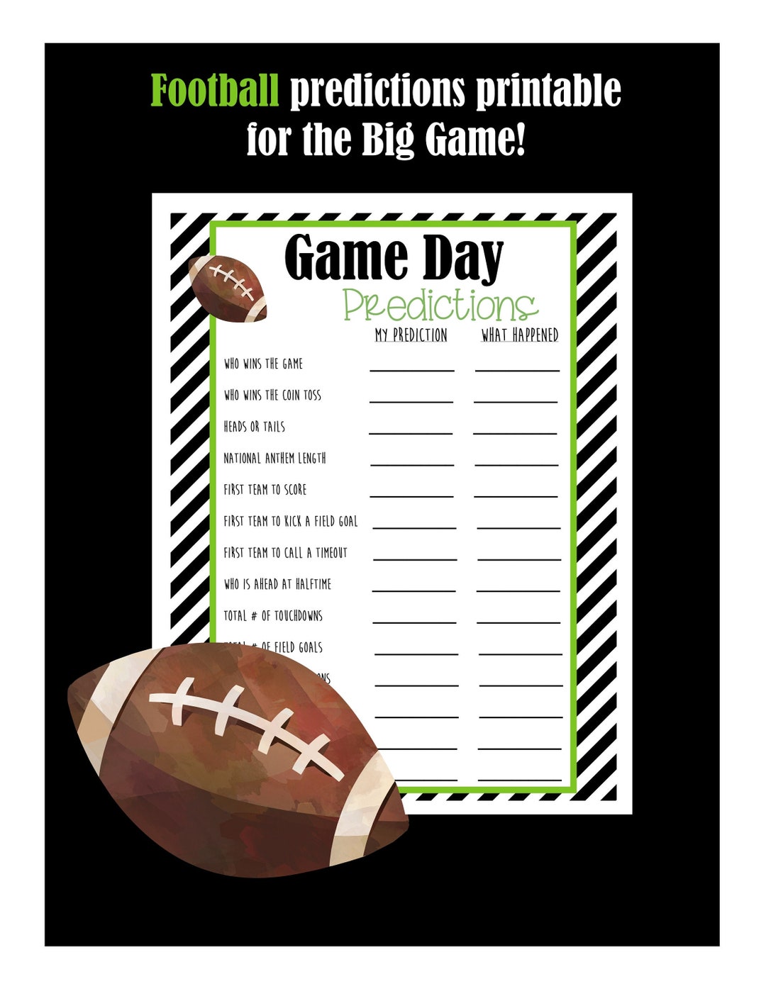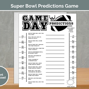 Super Bowl Predictions Game ~ Football Party Games ~ Printable Digital