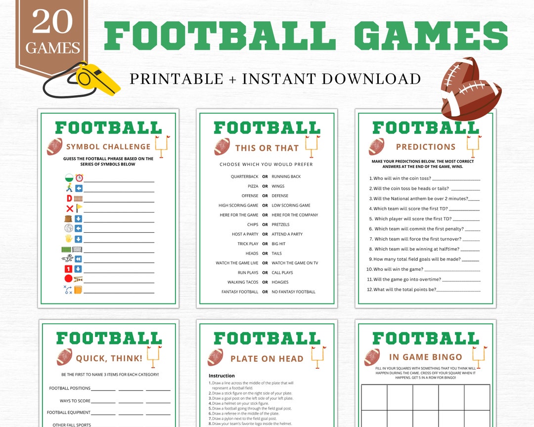 Football Game Bundle 15 Printable Football Party Games Pack Football